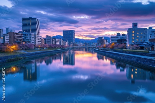 © Oleksandr, Obraz premium Toyama, Japan City Skyline with Tateyama Mountain in Twilight