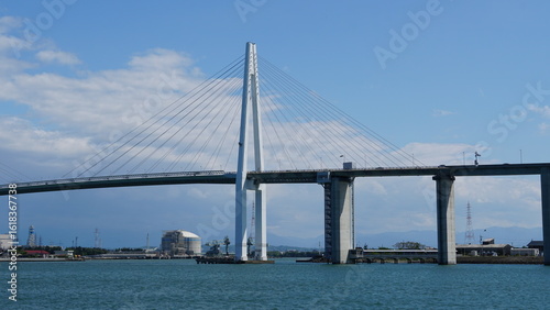 © Lanhang Ye, Fototapeta premium Toyama Port under Blue Skies: Bridges and Sails over the Japan Sea