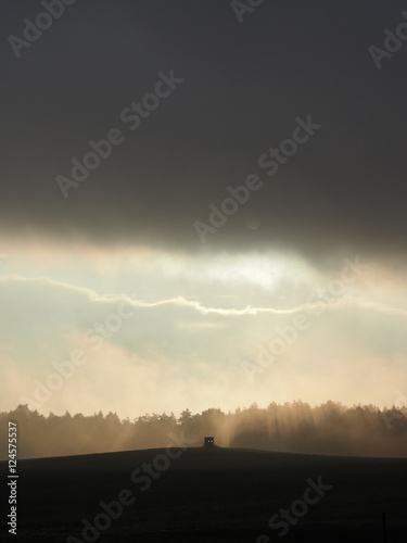 © finecki, Fototapeta premium Trübes Herbstwetter im Wald und auf der Wiese