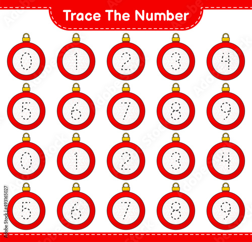 © Pure Imagination, Naklejka premium Trace the number. Tracing number with Christmas Ball. Educational children game, printable worksheet, vector illustration