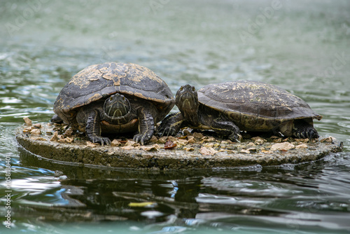 © julioandres, Fototapeta premium Trachemys scripta elegans, tortuga, anfibio, lago,