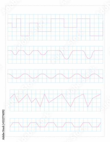 © sachch, Naklejka premium Tracing page practice, red, blue, background illustration