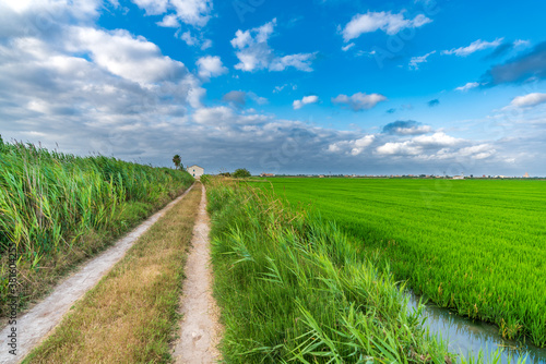 © F.C.G., Obraz premium Track and house near rice fields in Valencia
