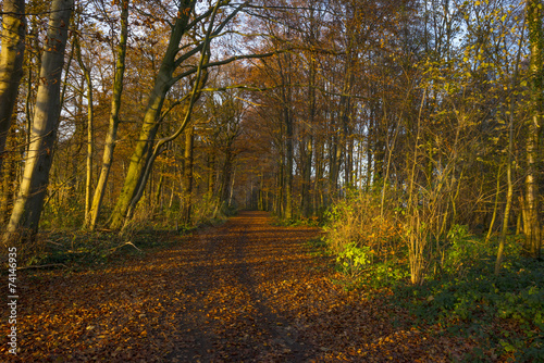 © Naj, Obraz premium Track in a forest at sunset in autumn