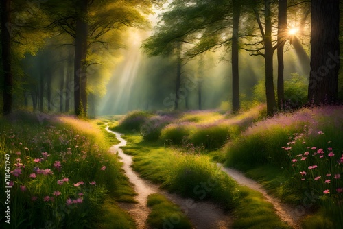 © tayyaba, Obraz premium track in a forest in mountains