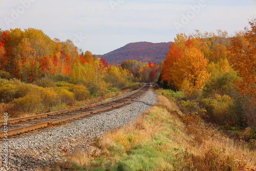 © Daniel Meunier, Fototapeta premium Tracks in fall landscape eastern townships Bromont Quebec province Canada