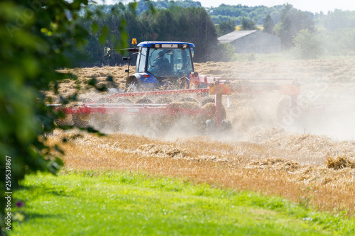 Fototapeta premium Tracteur dans un champ de blé après la moisson