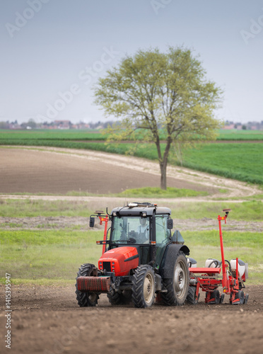 © Dusan Kostic, Obraz premium Tractor and seeder for sowing corn