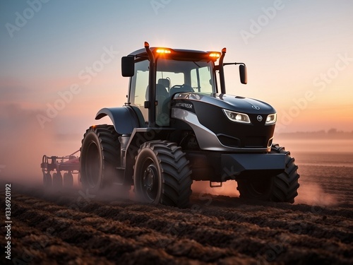 © Владимир Коврижник, Naklejka premium tractor at sunset