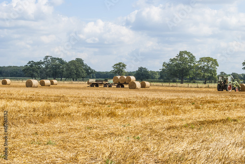 Fototapeta premium Tractor collecting hay bales