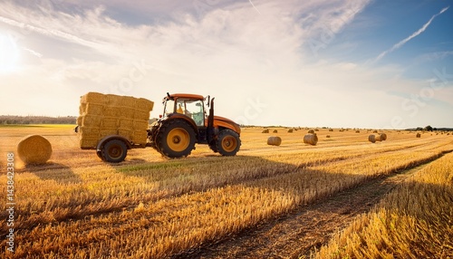 © Melvin, Obraz premium tractor collecting straw bales
