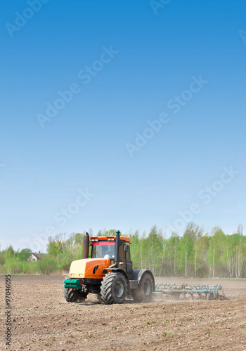 Obraz premium Tractor cultivating field