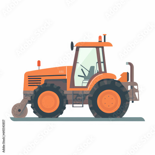 © Paper, Naklejka premium Tractor, 2D, simple, flat vector, cute cartoon, illustration, heavy machinery, child-friendly, educational materials, playful graphics, whimsical design, charming