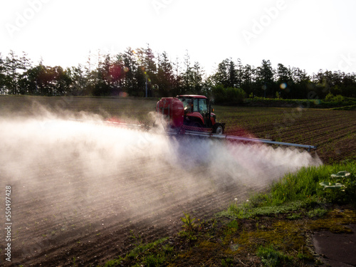 © 多田 智, Fototapeta premium Tractor doing farm work in spring field