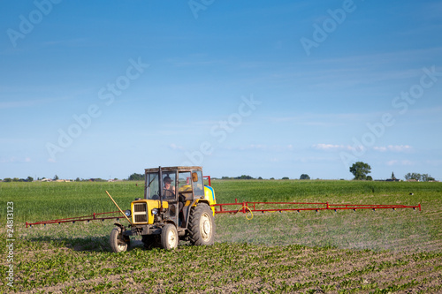 © Rafal Olechowski, Obraz premium Tractor fertilizing beetroot field
