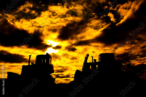 © Sura Nualpradid, Fototapeta premium Tractor in construction site on mountain