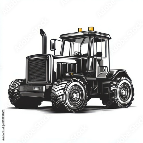 Naklejka premium Tractor in detailed black illustration showing robust design and prominent features