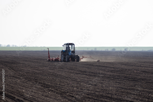 Obraz premium tractor in the field sow