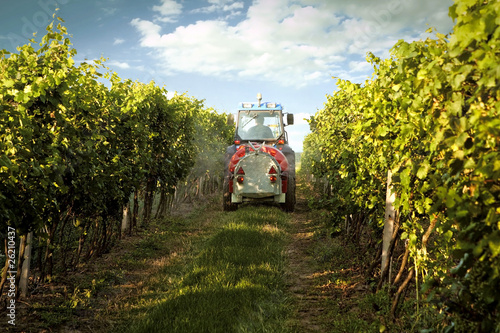 © Rostislav Sedlacek, Fototapeta premium Tractor in the vineyard spraying toxic protection
