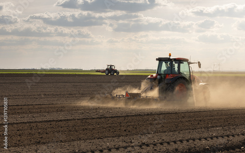 © Dusan Kostic, Fototapeta premium Tractor is preparing the land at dusk