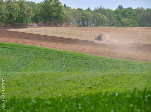 Obraz premium 土煙を上げるトラクター / Tractor making a cloud of dust
