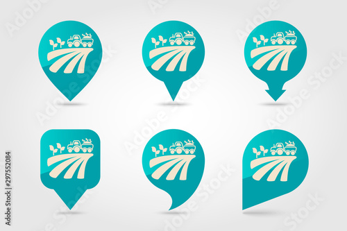 © nasik, Fototapeta premium Tractor on field harvest seedling pin map icon