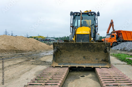 © Makeev Petr, Obraz premium Tractor on the wheel wash at the construction site