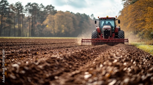 © Prasojo, Fototapeta premium Tractor plowing a field in autumn.