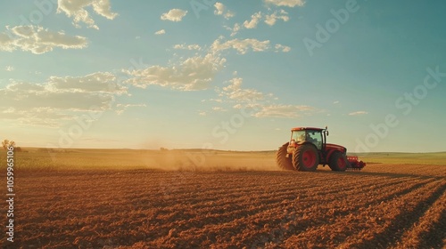 © SunPunjiStudio, Obraz premium Tractor Plowing Field.
