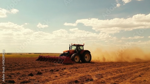 © luck, Obraz premium Tractor Plowing Field