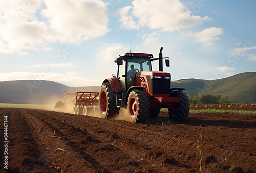 Fototapeta premium Tractor plowing field with plow