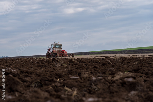 © ba11istic, Fototapeta premium Tractor plowing fields.