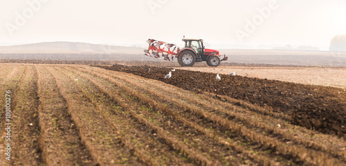 © Dusan Kostic, Fototapeta premium Tractor plowing fields -preparing land for sowing in autumn