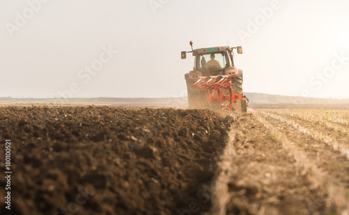 © Dusan Kostic, Fototapeta premium Tractor plowing fields -preparing land for sowing in autumn