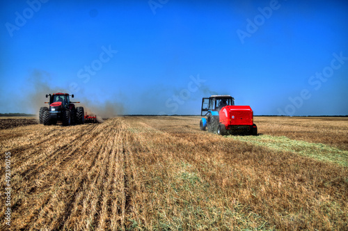 © Максим Халанский, Obraz premium Tractor plowing in the field