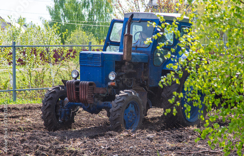 Fototapeta premium Tractor plowing soil in spring