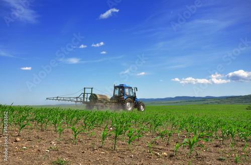 Naklejka premium Tractor plowing the fields back