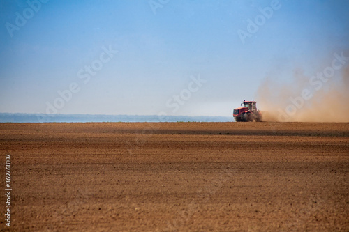 © mironovm, Obraz premium Tractor plowing the fields in spring