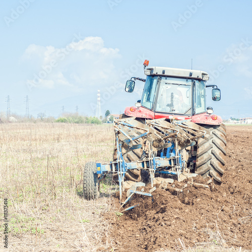 © Franco Nadalin, Fototapeta premium Tractor plowing the stubble field