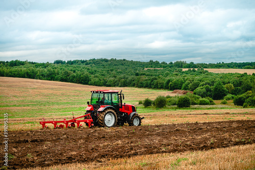 Obraz premium tractor plows the land