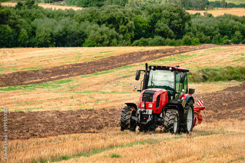 © smspsy, Obraz premium tractor plows the land