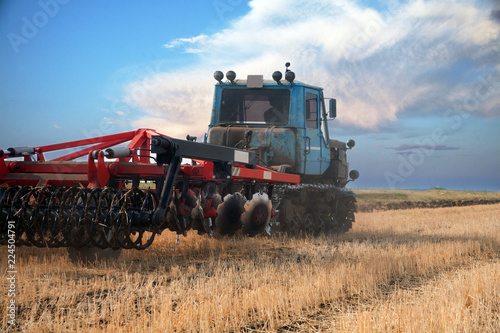 © mironovm, Obraz premium Tractor preparing land for sowing