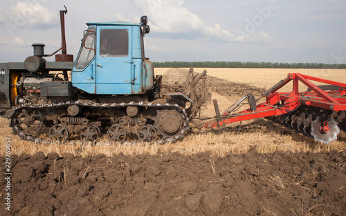 Obraz premium Tractor preparing land for sowing
