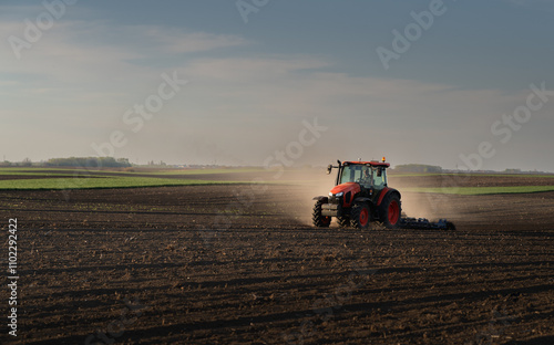 © Dusan Kostic, Obraz premium Tractor preparing the land for a new crop planting