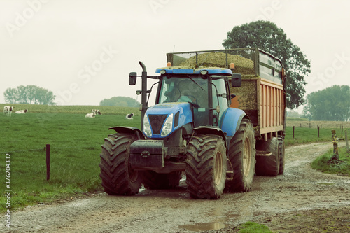 © erwin, Naklejka premium Tractor returning from corn harvest