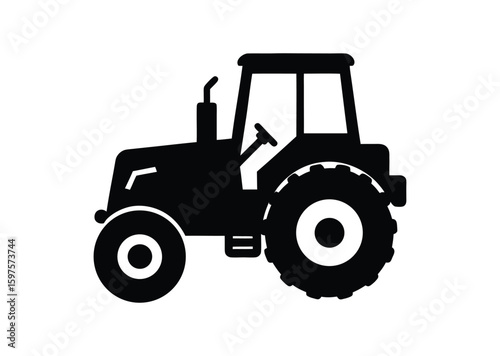 Fototapeta premium Tractor silhouette black vector white background