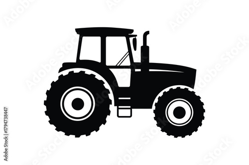 © SaymaHossan, Obraz premium Tractor silhouette vector icon for modern agricultural farming and machinery