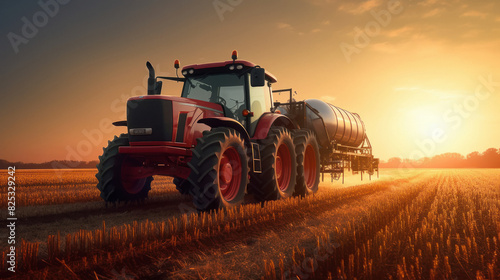 Fototapeta premium Tractor spraying pesticides in wheat field