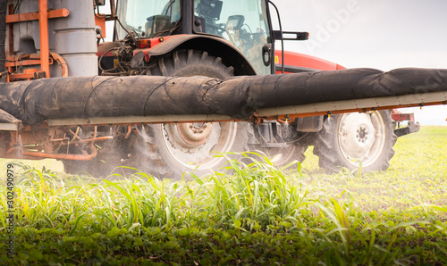 © Dusan Kostic, Fototapeta premium Tractor spraying soybean field