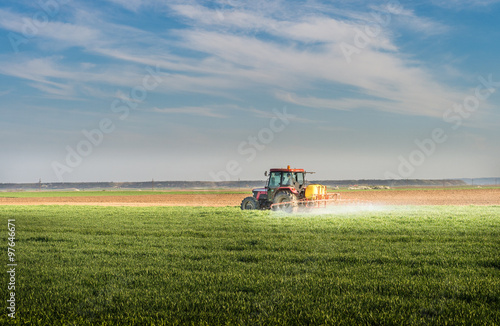 © Dusan Kostic, Fototapeta premium Tractor spraying wheat field